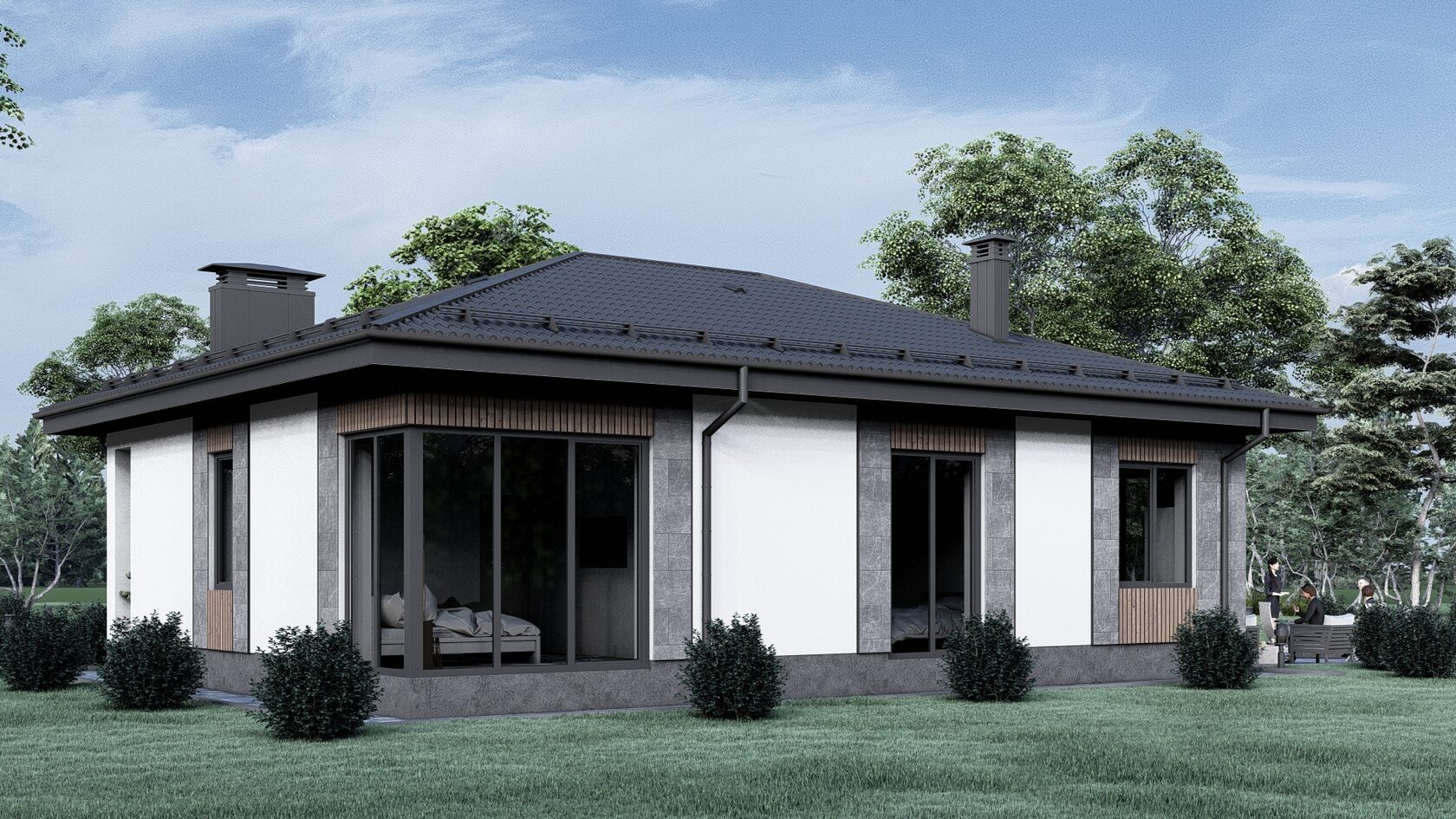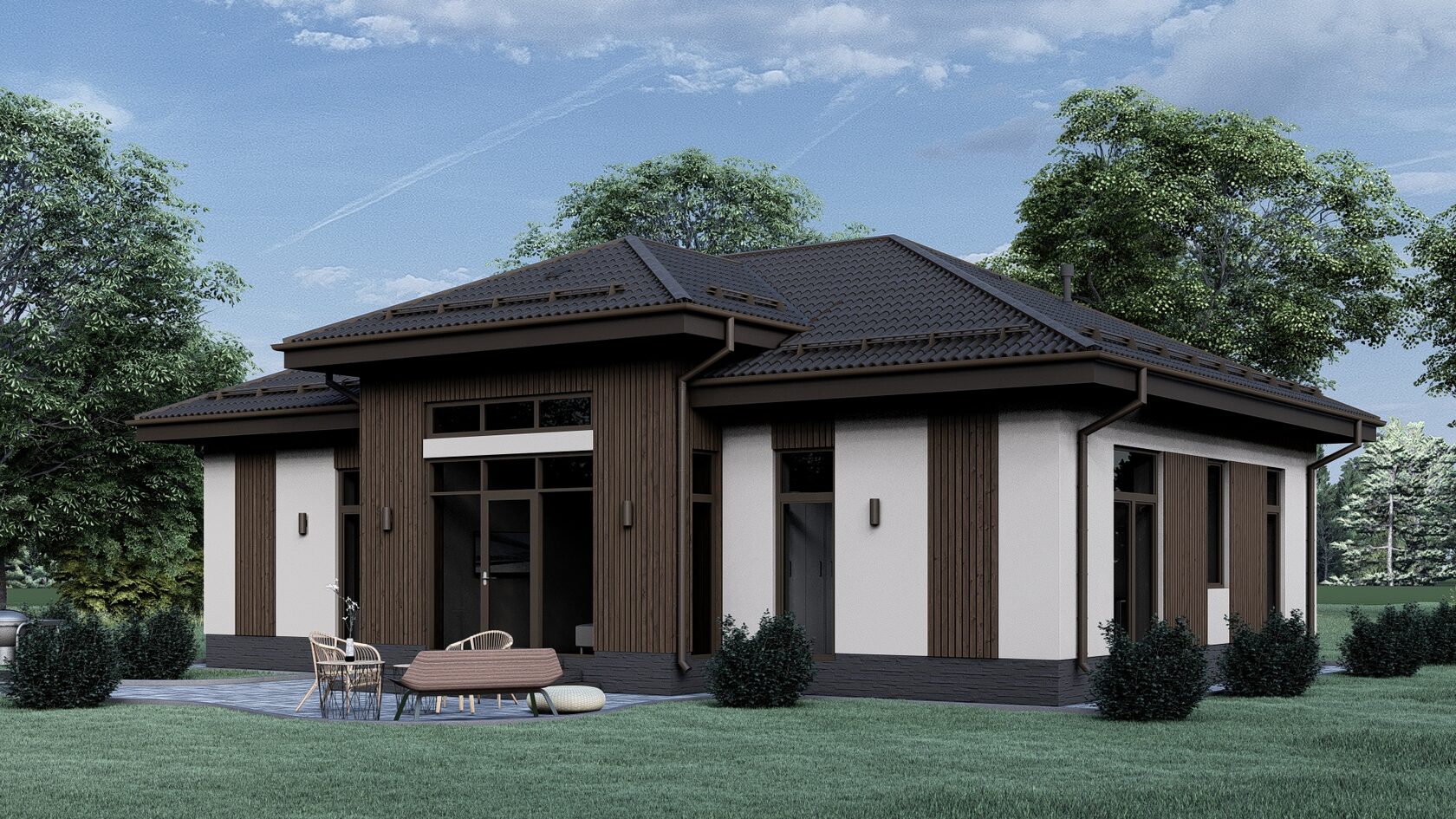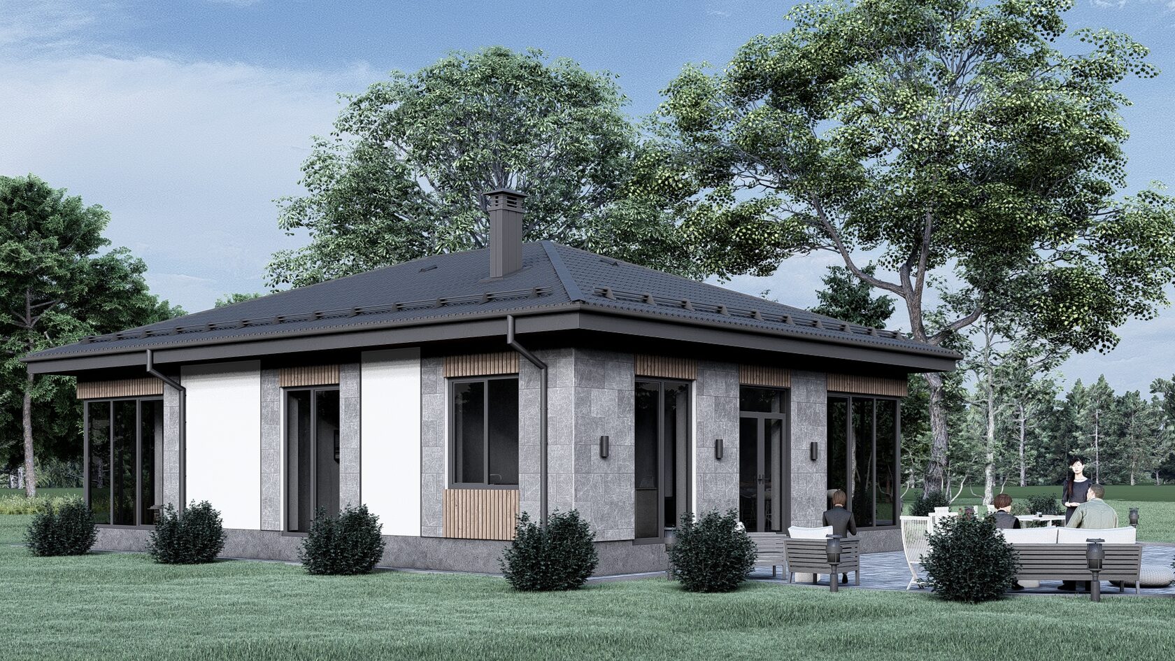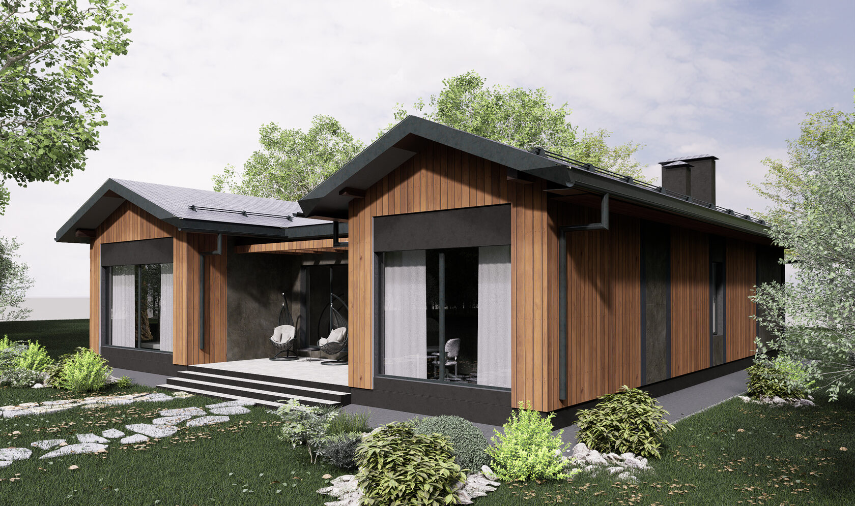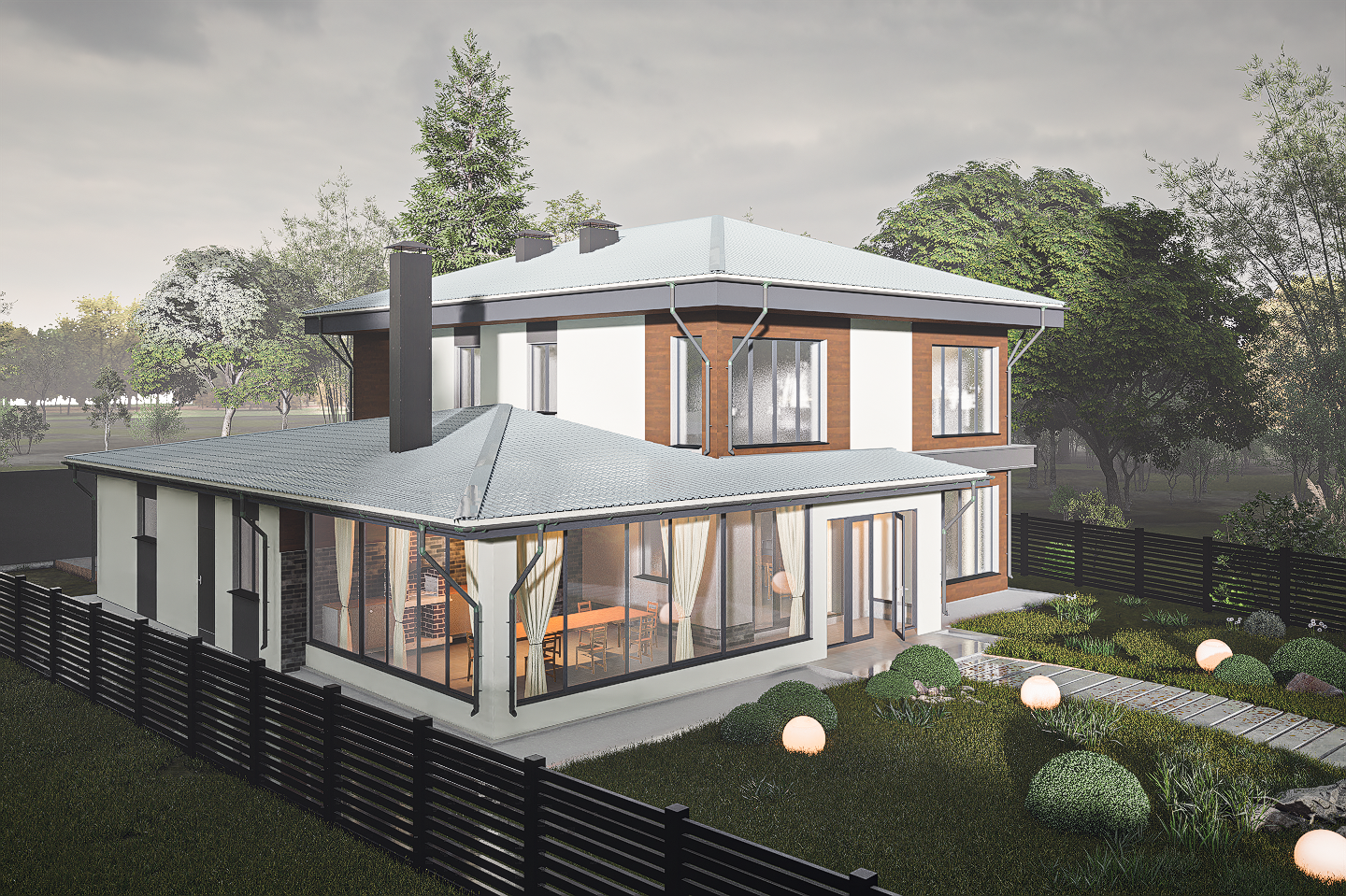 — визуальное воплощение ваших желаний. Содержит планы здания с примерным расположением мебели, рендеры фасадов, описание основных материалов и видов отделки.